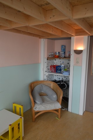 Les parents fournissent le lait auquel le bambin est habitué : en poudre ou maternel. Et si maman souhaite continuer à allaiter, un espace un peu à l'écart, calme et confortable, lui est dédié.